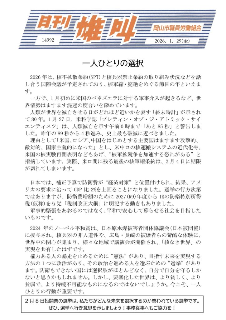 「地域住民の幸せなくして 自治体労働者の幸福はない」市民のために職員が活き活きと働いていけるよう、岡山市職員労働組合は日々さまざまな取り組みを行っています。